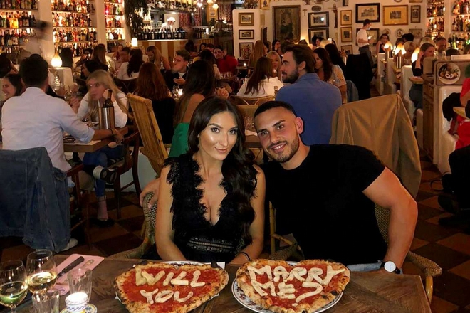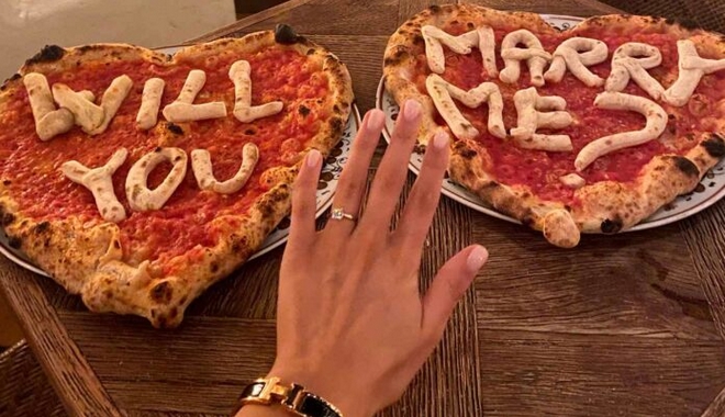 “Θα με παντρευτείς;” σχημάτιζαν τα γράμματα κρούστας που είχαν τοποθετηθεί πάνω στις πίτσες.