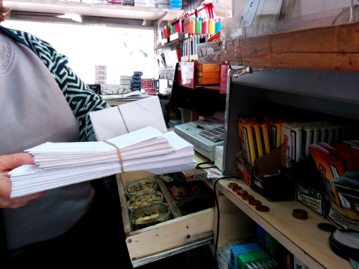 «Μεγάλο ή μικρό;», ρωτάει η κυρία Ελένη και ξεδιπλώνει το φαρδύ χαμόγελό της γεμάτο υπονοούμενα, μαζί και πέντε δεσμίδες από διαφορετικά μεγέθη άσπρων φακέλων, με κόστος από 0.05 έως 0.50 λεπτά τον ένα. «Κάνω πλάκα. Μπας και απαλύνω τον πόνο. Δεν τελειώνει όμως το δράμα. Ξέρω. Τα πέρασα κι εγώ», μονολογεί και αναπολεί το 1995 που ήρθε από την Αλβανία στην Ελλάδα με το σύζυγό της για ένα καλύτερο αύριο. Λίγα χρόνια όμως αργότερα, έπεσε στη «δαγκάνα» της κρατικής υγείας. «Χρειάστηκα γυναικολογική επέμβαση. Ο γιατρός τότε μου ζητούσε 200 για το νοσοκομείο και ό, τι νομίζω για εκείνον. Τελικά την ανέβαλα. Πήγα σε άλλο γιατρό κάμποσες εβδομάδες μετά. Αυτός δεν ήθελε προσωπική αμοιβή. Πάλι καλά». Εξάλλου, όπως η ίδια διευκρινίζει «σε όλες αυτές τις περιπτώσεις, οι πελάτες προτιμούν τους μικρούς φακέλους για να μην φαίνονται. Όμως τους αγοράζουν και για άλλες χρήσεις».