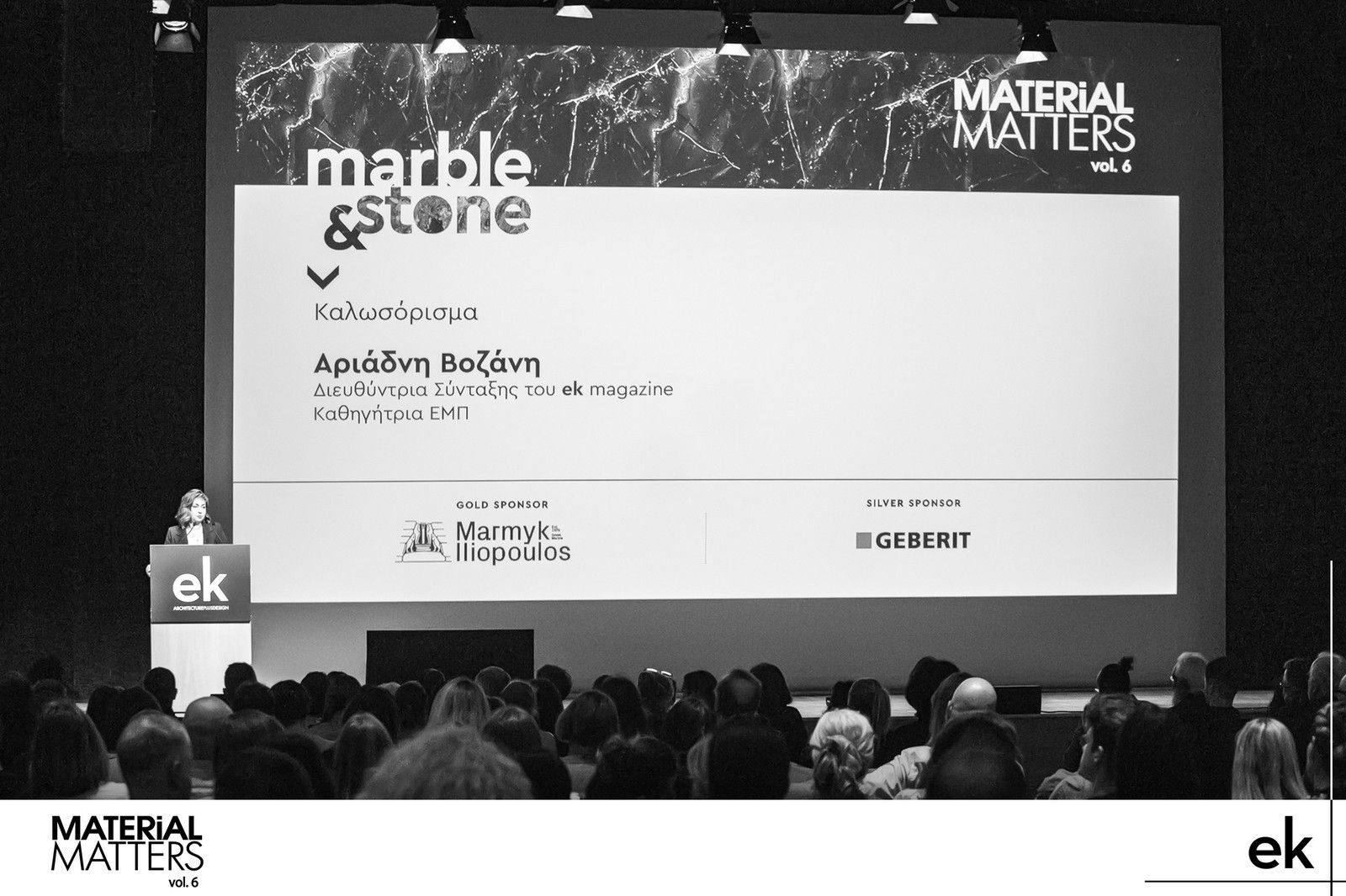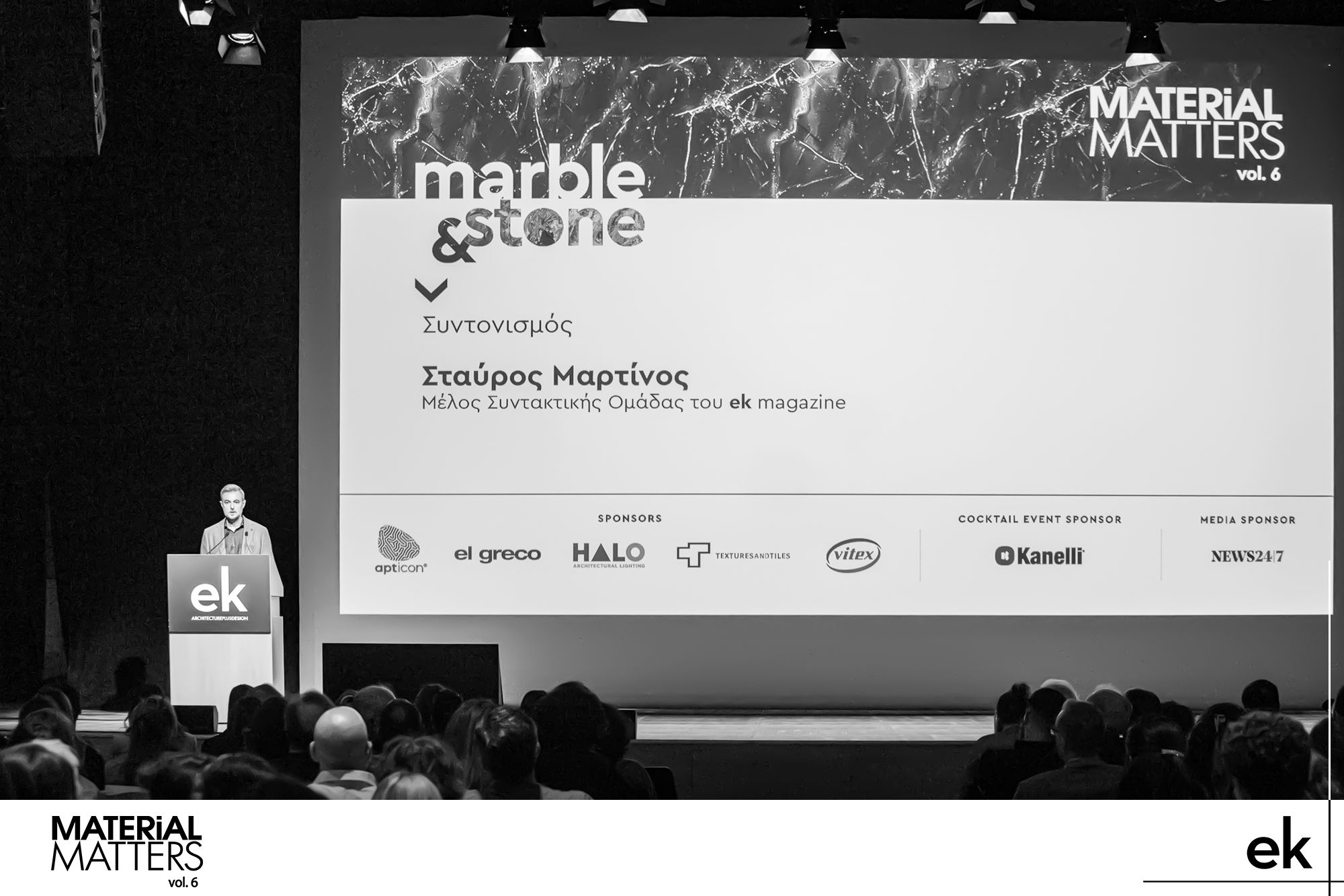 Αρχιτέκτονες και designers παρουσίασαν έργα και επιρροές, με άξονα το μάρμαρο και τα πετρώματα, στην 6η Material Matters, μια διοργάνωση του ek magazine, που εξερεύνησε τη σύνδεση ύλης και του σχεδιασμού.