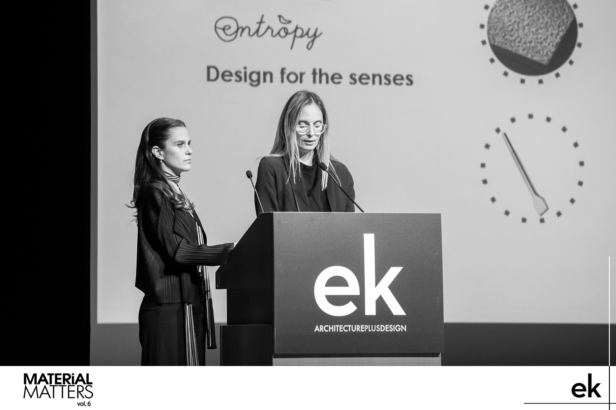 H Νίκη και Ζωή Μοσκόφογλου – On Entropy – μίλησαν για τη χρήση μαρμάρου σε έργα design από τη σκοπιά της φαινομενολογίας, ανακαλώντας την αρχιτεκτονική του Peter Zumthor.