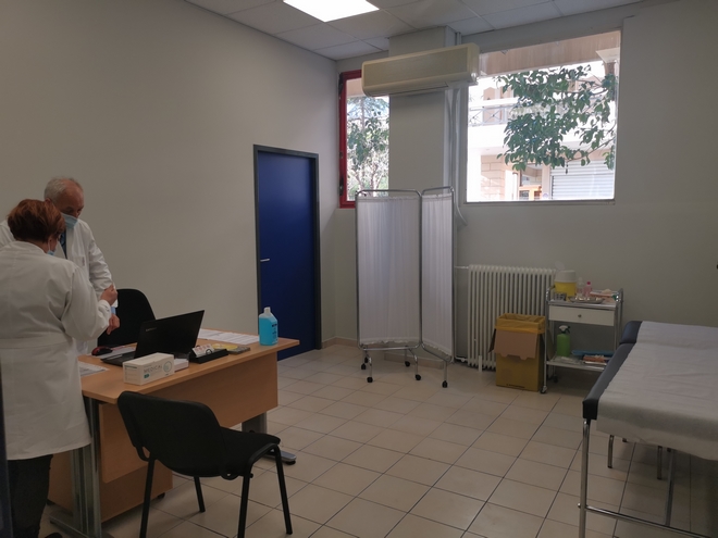 Όπως εξήγησε ο επιστημονικός υπεύθυνος του εμβολιαστικού κέντρου, Μιλτιάδης Καράμπελας, στο κτίριο υπάρχουν τρεις αίθουσες εμβολιασμού.