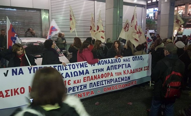 Παράσταση διαμαρτυρίας στο υπουργείο Οικονομικών πραγματοποίησαν εργαζόμενοι από σωματεία του ιδιωτικού και δημόσιου τομέα που συσπειρώνονται στο ΠΑΜΕ