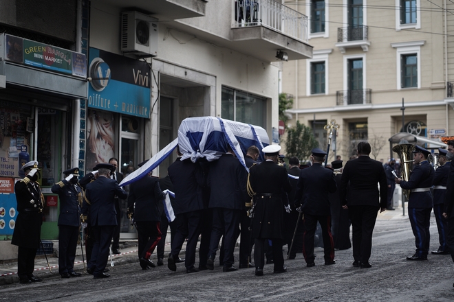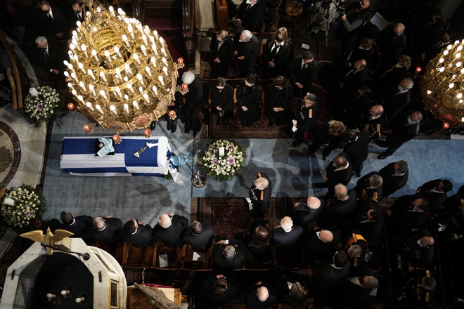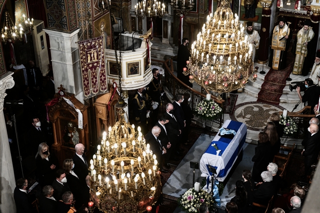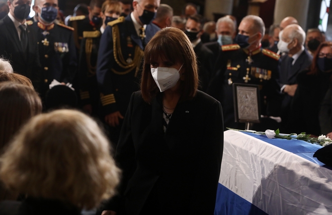 Σήμερα αποχαιρετάμε έναν πιστό και ανυστερόβουλο υπηρέτη του τόπου μας, είπε η Κατερίνα Σακελλαροπούλου στον επικήδειο. Το παρών τον Ιερό Ναό Αγίου Σπυρίδωνος στο Παγκράτι έδωσαν οι πολιτικοί αρχηγοί.