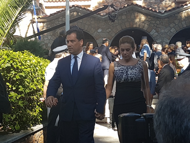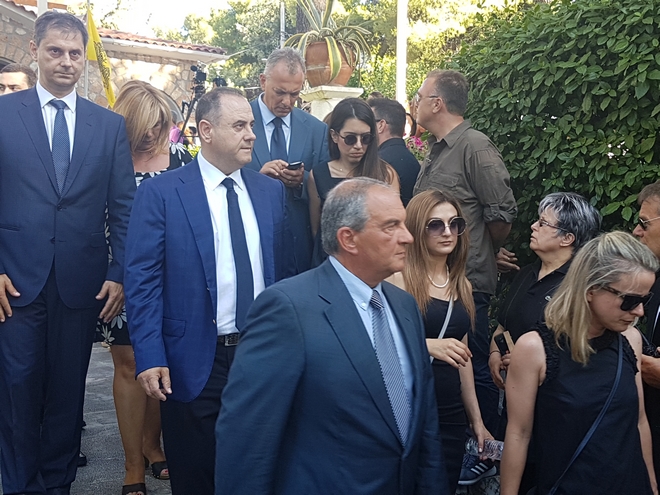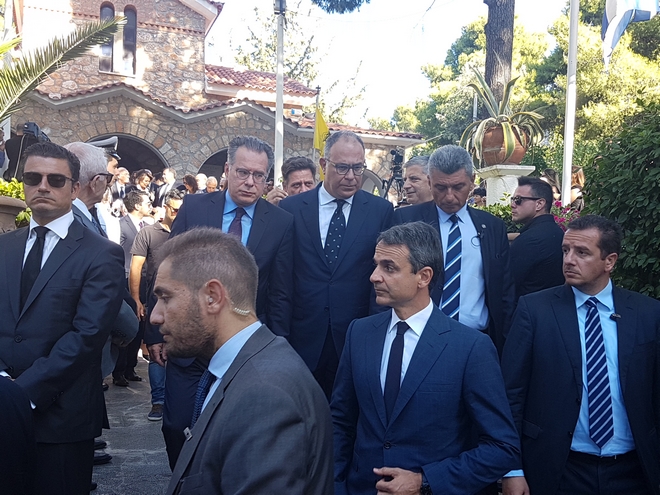Το παρών στην εξόδιο ακολουθία έδωσαν μεταξύ άλλων ο Πρόεδρος της Δημοκρατίας Προκόπης Παυλόπουλος, ο πρόεδρος της Νέας Δημοκρατίας Κυριάκος Μητσοτάκης, η επικεφαλής της Δημοκρατικής Συμπαράταξης και πρόεδρος του ΠΑΣΟΚ Φώφη Γεννηματά, ο πρώην πρωθυπουργός Κώστας Καραμανλής, ο πρώην πρωθυπουργός Αντώνης Σαμαράς, ο πρώην πρόεδρος της ΝΔ Βαγγέλης Μεϊμαράκης, ο πρώην πρόεδρος του ΠΑΣΟΚ Ευάγγελος Βενιζέλος, ο πρώην πρόεδρος της Βουλής Δημήτρης Σιούφας, ο πρόεδρος της Ένωσης Κεντρώων Βασίλης Λεβέντης, ο υφυπουργός Εξωτερικών Τέρενς Κουίκ (που ήταν από τα ιδρυτικά δημοσιογραφικά στελέχη του ομίλου ANT1), ο αντιπρόεδρος της ΝΔ Κωστής Χατζηδάκης, ο αντιπρόεδρος της ΝΔ Άδωνις Γεωργιάδης με τη σύζυγό του Ευγενία Μανωλίδου, ο πρώην υπουργός Οικονομικών Γιάννης Παπαθανασίου, η πρώην υπουργός Φάνη Πάλλη Πετραλιά, ο βουλευτής της ΝΔ Νότης Μηταράκης, ο βουλευτής της ΝΔ Γιώργος Κουμουτσάκος, ο αντιπεριφερειάρχης Αττικής Γιώργος Καραμέρος, ο περιφερειάρχης Κεντρικής Μακεδονίας Απόστολος Τζιτζικώστας, η πρώην ευρωβουλευτής Νίκη Τζαβέλλα, η πρώην βουλευτής Ελένη Κούρκουλα, ο πρώην βουλευτής Χρήστος Πρωτόπαπας, η ολυμπιονίκης και πολιτευτής Βούλα Πατουλίδου, ο πρόεδρος της  Ελληνικής Ολυμπιακής Επιτροπής Σπύρος Καπράλος, η επιχειρηματίας Γιάννα Αγγελοπούλου Δασκαλάκη, ο επιχειρηματίας Βαρδής Βαρδινογιάννης, ο επιχειρηματίας Δημήτρης Κοπελούζος, ο επιχειρηματίας Μιχάλης Σάλλας, ο επιχειρηματίας Αντώνης Λυμπέρης, ο δικηγόρος Αλέξανδρος Λυκουρέζος, ο δήμαρχος Αμαρουσίου Γιώργος Πατούλης, ο δήμαρχος Μαραθώνα Ηλίας Ψινάκης και ο πρόεδρος της ΚΑΕ Ολυμπιακός Παναγιώτης Αγγελόπουλος.