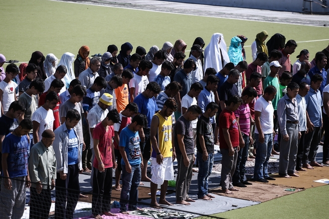 Open prayer and celebrations for the Eid al-Fitr marking the end of the fasting month of Ramadan, at the Elliniko Refugee Camp, in Athens, on July 6, 2016 / Eid al-Fitr () , , , 6 , 2016 SOOC