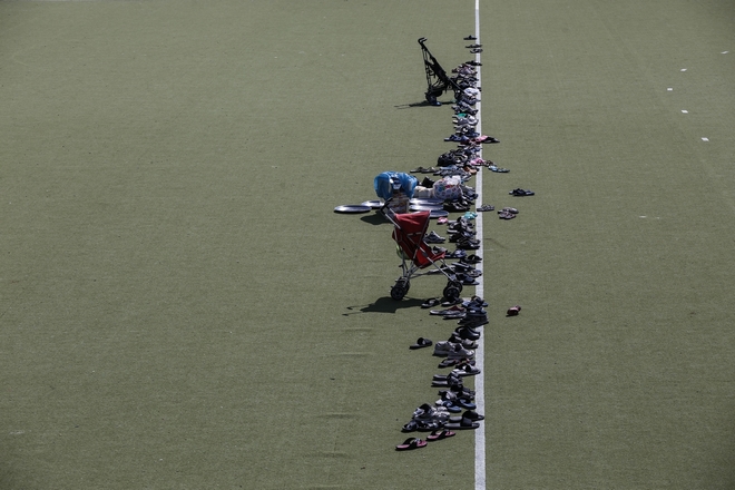 Οι πρόσφυγες γιόρτασαν στο γήπεδο του χόκεϊ με τραγούδια και χορούς συνοδεία παραδοσιακών ήχων, που ακούγονταν από μεγάφωνα.