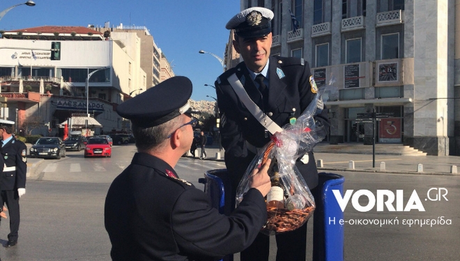 Πράγματι, εκπρόσωποι της τροχαίας, της πολιτείας, των τοπικών αρχών και του ΟΑΣΘ, μεταξύ των οποίων η Αντιπεριφερειάρχης Βούλα Πατουλίδου, ο επικεφαλής της δημοτικής παράταξης Εντάξει Σταύρος Καλαφάτης, ο πρόεδρος του ΟΑΣΘ Στέλιος Παππάς και ο πρόεδρος της ΠΕΔΚΜ, Λάζαρος Κυρίζογλου, εδωσαν δώρα στον τροχονόμο και του ευχήθηκαν καλές γιορτές, ευχαριστώντας τον παράλληλα για την προσφορά του.
