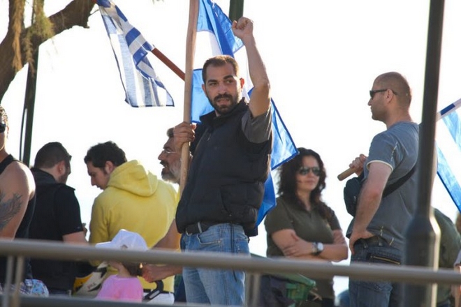Ομιλητής στον τόπο συγκέντρωσης, το σημείο της δολοφονίας, είναι ο – πλέον υπόδικος για συμμετοχή σε εγκληματική οργάνωση – Ηλίας Κασιδιάρης, ο οποίος μιλάει από ένα από τα μεγάφωνα που έχει φέρει η οργάνωση. Στη διαδήλωση που σχηματίζεται προς την οδό Αθηνάς, τα μεγάφωνα και τα συνθήματα που ακούγονται δεν αφήνουν καμία αμφιβολία ότι η Χρυσή Αυγή έχει κινητοποιήσει το σύνολο των κομματικών της δυνάμεων: “Δουλειά στον Έλληνα εργάτη”, “Αλήτες προδότες πολιτικοί”, “Έξω οι ξένοι απ’ την Ελλάδα”, κλπ.