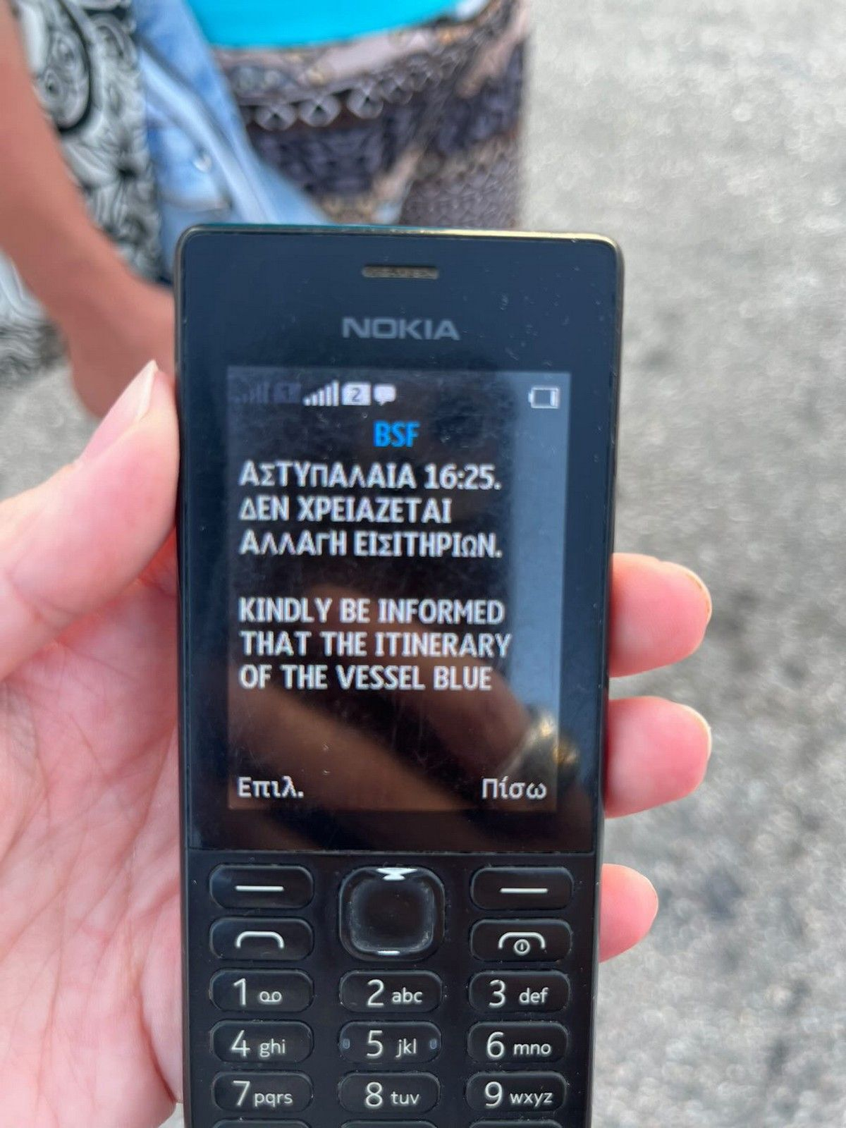 Ωστόσο, το σημερινό δρομολόγιο είχε “κλειδώσει” για τους επιβάτες της σημερινής ημέρας και μόνο λίγοι έλαβαν σχετικό SMS, το οποίο στην πραγματικότητα ήταν ένα παραπληροφορητικό μήνυμα που τους ενημέρωνε ότι δεν χρειάζεται τροποποίηση εισιτηρίων, όπως φαίνεται και στην παρακάτω φωτογραφία που αφορά το ίδιο δρομολόγιο.
