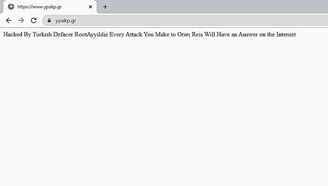 Μάλιστα, η ομάδα που υπογράφει ως «Turkish Defacer RootAyyildiz» άφησε και μήνυμα στη λευκή σελίδα που φαίνεται στο site.