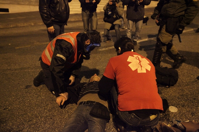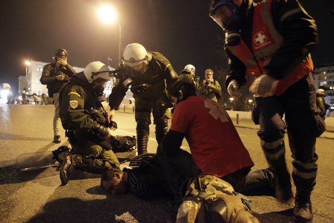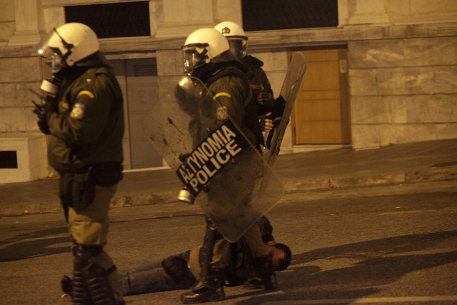 Εκεί ένας αστυνομικός φώναξε: “Έχασε τις αισθήσεις του. Βγάλτε του τις χειροπέδες”. Έτσι κι έγινε. Του έβγαλαν τις χειροπέδες, του έριξαν νερό και τον άφησαν πεσμένο στο οδόστρωμα να περιμένει τις Πρώτες Βοήθειες. “Γλίστρησε κι έπεσε” έλεγαν διμοιρίτες των ΜΑΤ σε βουλευτή που ζητούσε εξηγήσεις.