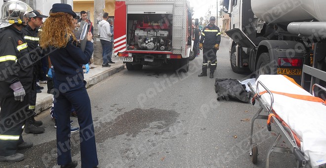 Η γυναίκα, κάτω από αδιευκρίνιστες συνθήκες, βρέθηκε κάτω από τις ρόδες ενός βυτιοφόρου που οδηγούσε ένας 41χρονος από την Αχαΐα και βρήκε ακαριαίο θάνατο.