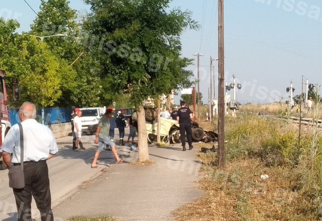 Ένας άνθρωπος έχασε τη ζωή του στη Λάρισα, μετά από τη σύγκρουση του οχήματός του με διερχόμενο τρένο. Το όχημα μετατράπηκε σε άμορφη μάζα σιδερικών.