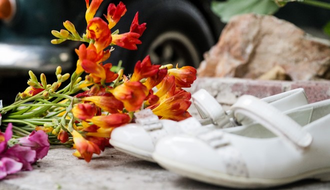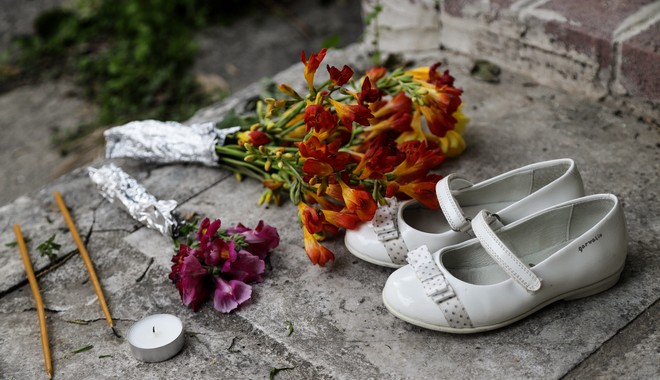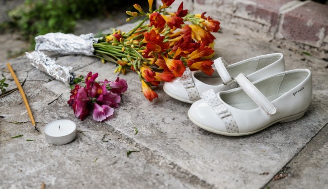 Τα λευκά παπουτσάκια βρήκαν τη θέση τους ανάμεσα στα λουλούδια και τα αναμμένα κεράκια που άφησαν γείτονες στο σημείο για το κοριτσάκι που βρήκε τραγικό θάνατο στο σημείο, όταν το πέταξε η μητέρα του από το μπαλκόνι του 5 ορόφου.