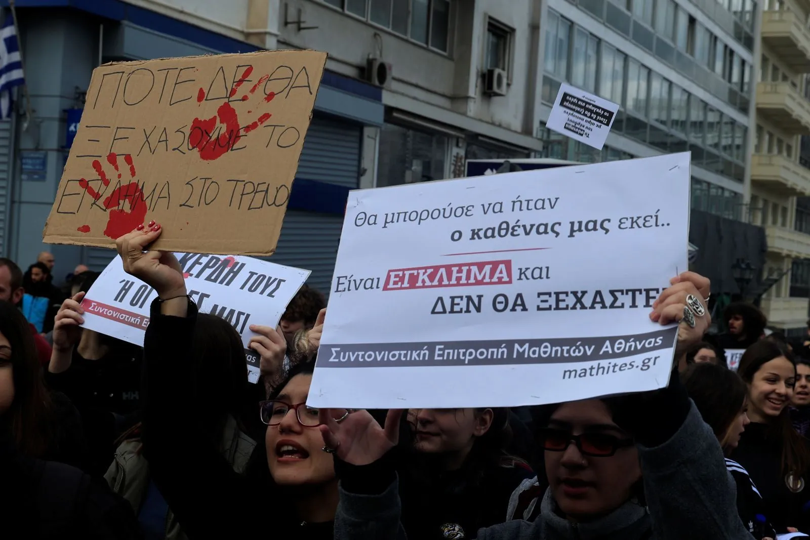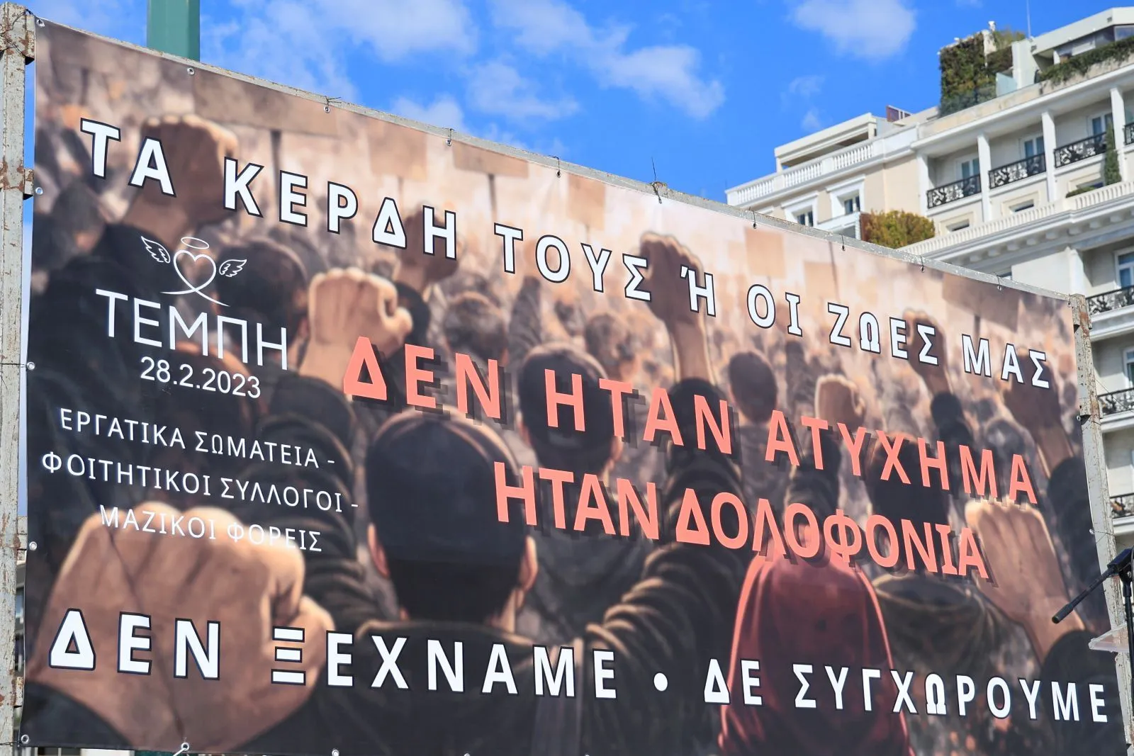 Με κεντρικό σύνθημα «Τα κέρδη τους ή οι ζωές μας – Δεν ήταν ατύχημα, ήταν δολοφονία – Δεν ξεχνάμε, δεν συγχωρούμε», χιλιάδες άνθρωποι κάθε ηλικίας, από φοιτητές και γονείς με τα παιδιά τους μέχρι ηλικιωμένα ζευγάρια, συγκεντρώθηκαν σήμερα μαζικά στο κέντρο της Θεσσαλονίκης, στην περιοχή γύρω από το άγαλμα του Βενιζέλου, προκειμένου να τιμήσουν τα θύματα της τραγωδίας της 28ης Φεβρουαρίου του 2023.