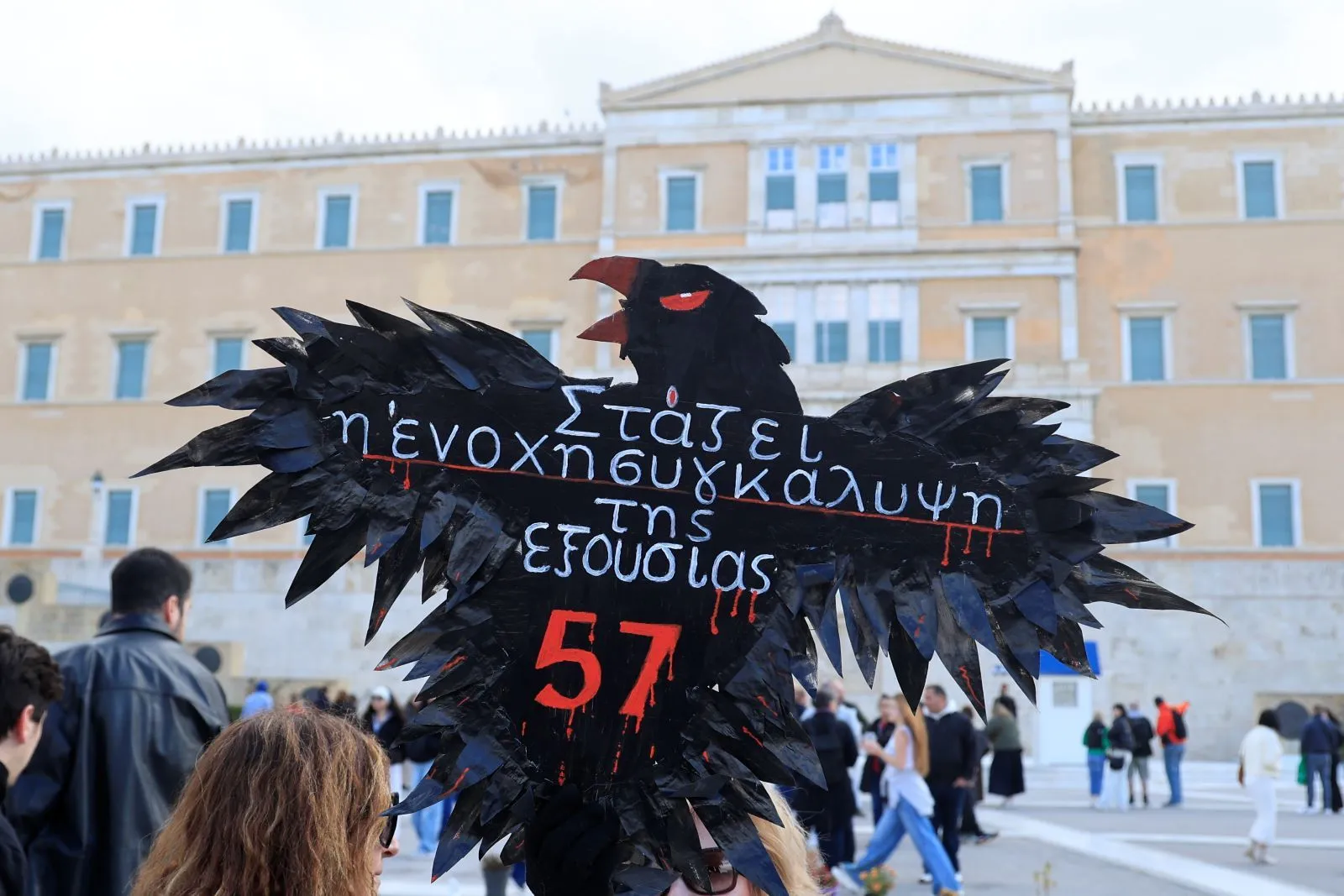 Η ελληνική αστυνομία εκτιμά ότι περίπου 40.000 άνθρωποι συγκεντρώθηκαν από νωρίς το πρωί στην πλατεία Συντάγματος, πολλοί εκ των οποίων άφησαν ένα λουλούδι δίπλα τα ονόματα των θυμάτων που είναι γραμμένα με κόκκινη μπογιά μπροστά από τη Βουλή.