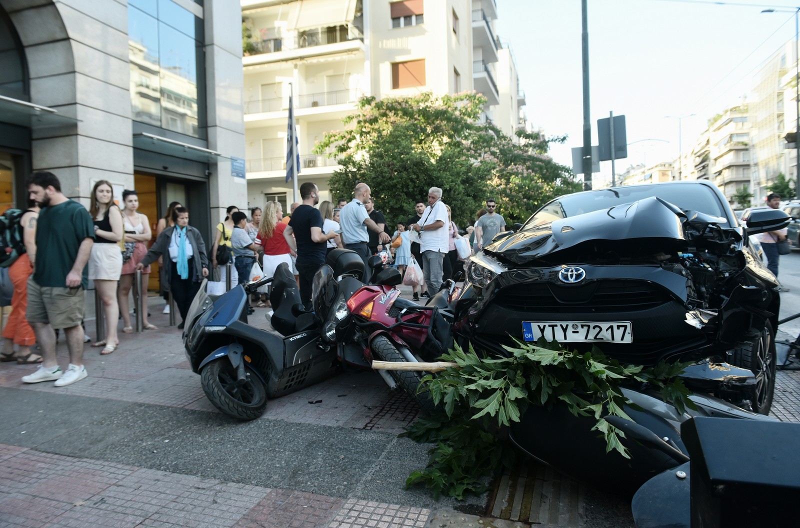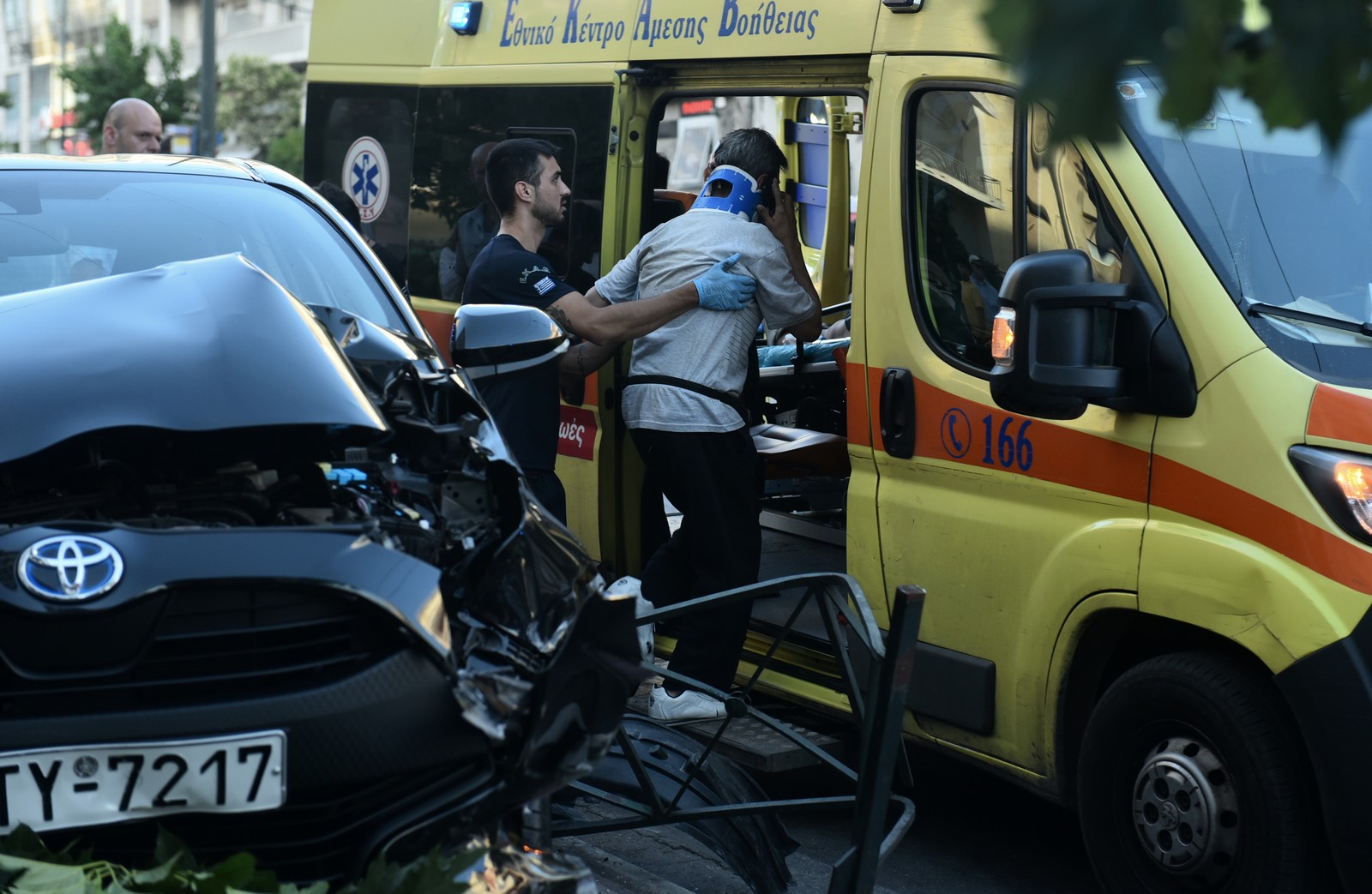 Από τη σύγκρουση των δύο οχημάτων το ένα εξετράπη και έπεσε πάνω σε δύο πεζούς.