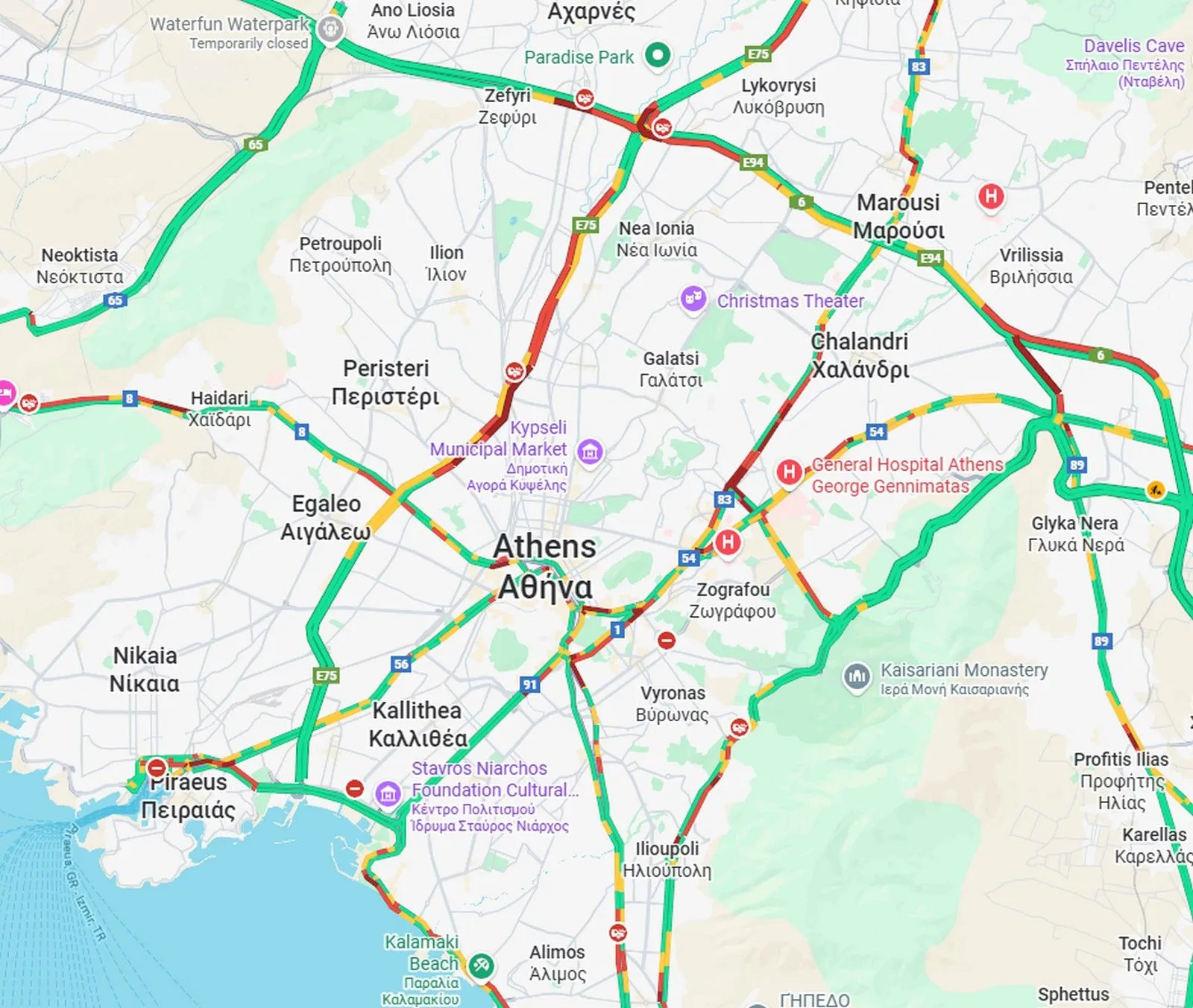 Ειδικότερα, αυξημένη είναι η κίνηση στον Κηφισό, και στα δύο ρεύματα, με τα οχήματα να κινούνται πάρα πολύ αργά.