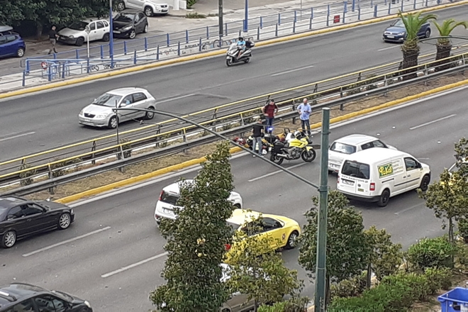 Τροχαίο στη Συγγρού: ΙΧ συγκρούστηκε με μoτοσικλέτα – Ένας τραυματίας και μποτιλιάρισμα στο σημείο