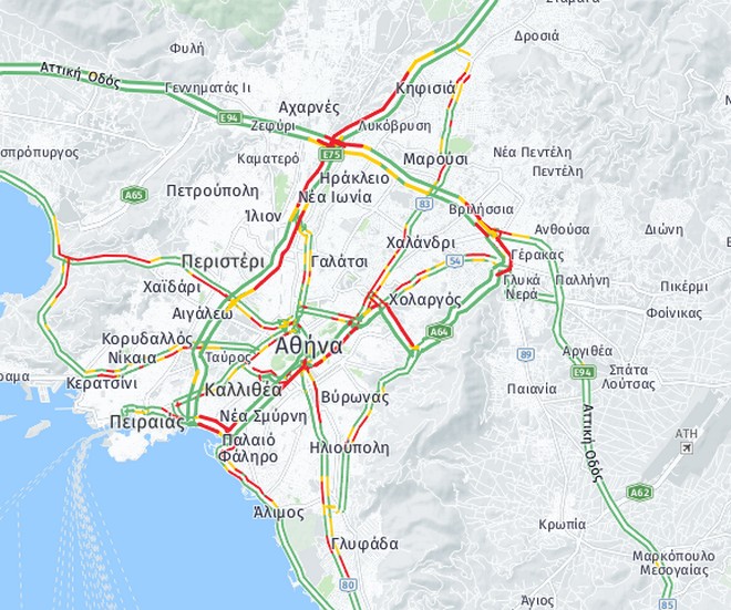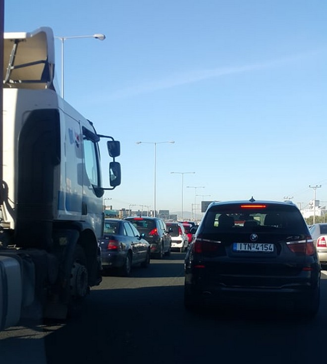 Το τροχαίο σημειώθηκε στο ύψος της Αχαρνών στο ρεύμα προς Πειραιά, ενώ το μποτιλιάρισμα ξεκινάει από το ύψος της Λυκόβρυσης.