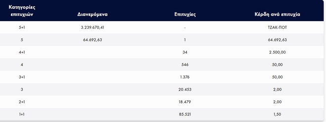 Δεν αναδείχτηκε κάποιος τυχερός την Πέμπτη στο τζόκερ, το οποίο έδινε πάνω από 3,2 εκατ. ευρώ στην 1η κατηγορία.