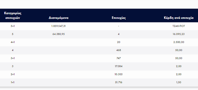 Σχεδόν 1,9 εκατ. ευρώ στην 1η κατηγορία μοίραζε το τζόκερ στην κλήρωση της Κυριακής (26/03), χωρίς και πάλι να βρεθεί νικητής.