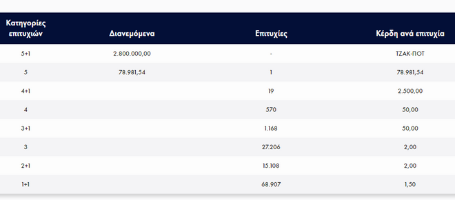 Πάνω από 2.800.000 ευρώ στην 1η κατηγορία μοίραζε το τζόκερ στην κλήρωση της Κυριακής (20/11), χωρίς και πάλι να βρεθεί νικητής.