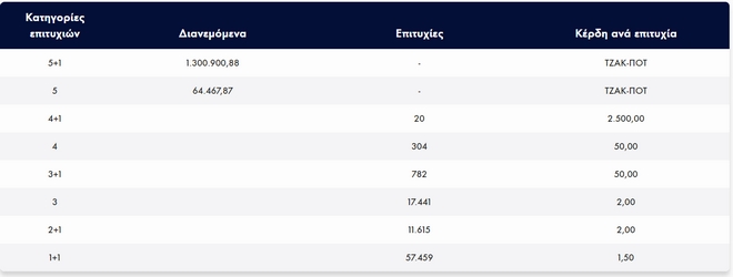 Το ποσό των 1,3 εκατ. ευρώ στην 1η κατηγορία μοίραζε το τζόκερ στην κλήρωση της Κυριακής (09/10), χωρίς και πάλι να βρεθεί νικητής.