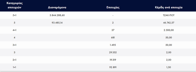 Πάνω από 3,8 εκατ. ευρώ στην 1η κατηγορία μοίραζε το τζόκερ στην κλήρωση της Κυριακής (23/10), χωρίς και πάλι να βρεθεί νικητής.