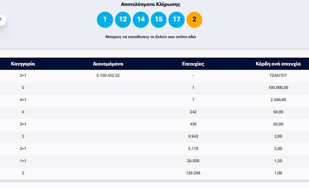 Σημειώνεται πως είχαμε ξανά τζακ ποτ στην αποψινή κλήρωση, καθώς δεν βρέθηκε υπερτυχερός στην πρώτη κατηγορία.