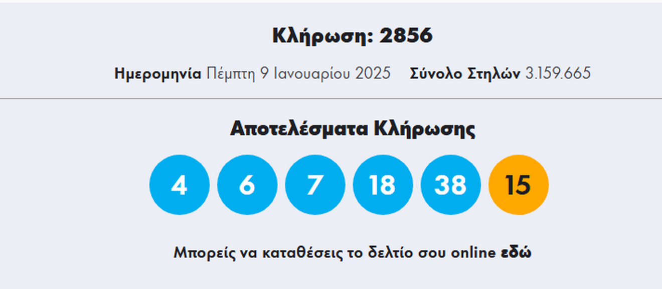 Οι τυχεροί αριθμοί στην κλήρωση του Τζόκερ είναι οι εξής: