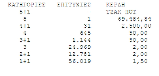 Οι τυχεροί αριθμοί του Τζόκερ: 2, 10, 13, 33, 44
