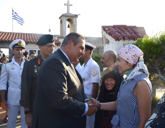 “Πόντος, Θράκη, Αιγαίο, Κύπρος είναι ένας και ενιαίος χώρος που τον προστατεύει η Παναγία. Όπως πήρε στην αγκαλιά της την Βασιλική και την κατέβασε από το ελικόπτερο. Θέλω να ξέρετε ότι όσα αεροπλάνα των ελληνικών Ενόπλων Δυνάμεων, της πολεμικής μας Αεροπορίας και όσα πλοία περνούν από εδώ, αλλά και οι στρατιώτες όσο μακριά και αν βρίσκονται από τον Πόντο, τη Θράκη, το Αιγαίο και την Κύπρο θα έχουν τη σκέψη τους σε εσάς που προσεύχεστε για την πατρίδα μας, με τη βοήθεια της Παναγίας που φανερώθηκε πολλές φορές”, επισήμανε, μεταξύ άλλων, ο κ. Καμμένος, απευθυνόμενος προς την ηγουμένη.