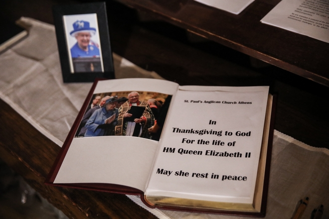 Πλήθος κόσμου έσπευσε στην Βρετανική Πρεσβεία και στην Αγγλικανική Εκκλησία Αγ. Παύλου στην Αθήνα για να αποτίσει φόρο τιμής στη μνήμη της βασίλισσας Ελισάβετ.