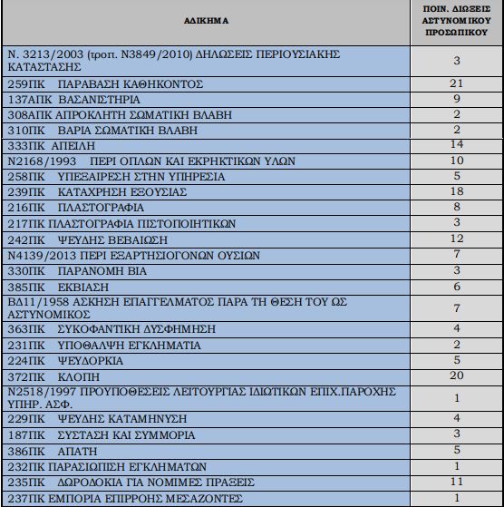 Η χειρότερη διετία με καταγεγραμμένες ακραίες συμπεριφορές στην ΕΛ.ΑΣ. ήταν αυτή του 2013-2014