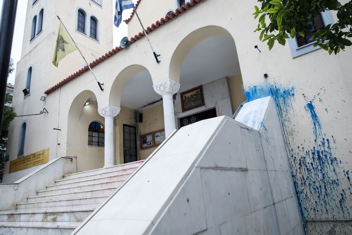 Μπογιές στο ναό στα Κάτω Πατήσια όπου λειτουργούσε ο ιερέας που κατηγορείται για τον βιασμό ανήλικης έριξαν άγνωστοι κατά τη διάρκεια της νύχτας.