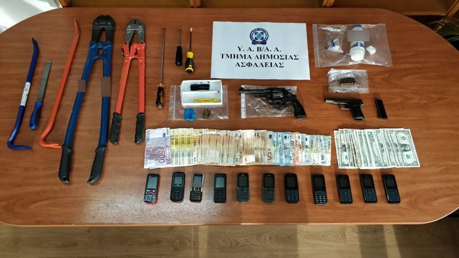 Σε έρευνες που πραγματοποιήθηκαν στις οικίες των κατηγορουμένων, μεταξύ άλλων βρέθηκαν και κατασχέθηκαν πληθώρα διαρρηκτικών εργαλείων, αντικλειδιών, κλειδιών πασπαρτού, λοστών, κοπτών, καθώς και κοσμήματα, χρυσαφικά, ρολόγια, δελτία αστυνομικής ταυτότητας, τραπεζικές κάρτες και άλλα τιμαλφή, μεγάλα χρηματικά ποσά και πυροβόλα όπλα.
