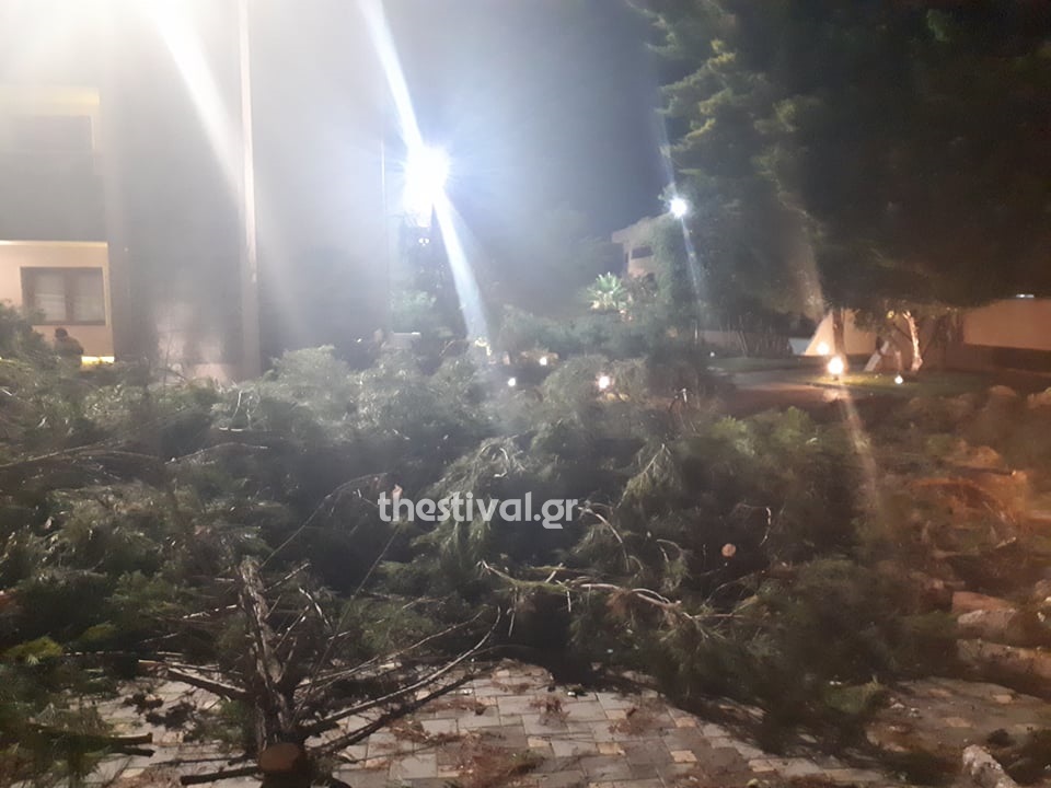 Στο ύψος του ξενοδοχείου Potidea Palace τον θάνατο βρήκαν ένας 39χρονος Ρώσος και ο 2χρονος γιος του, όταν καταπλακώθηκαν από δέντρο. Τους απεγκλώβισαν εργαζόμενοι από το ξενοδοχείο.