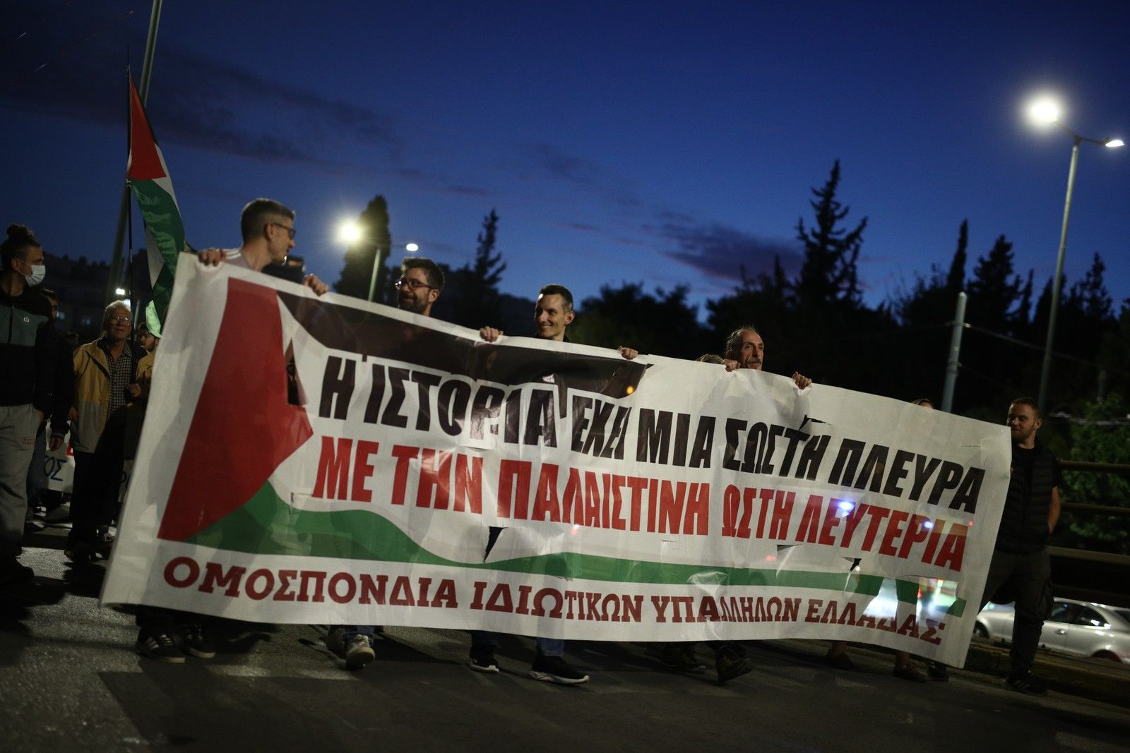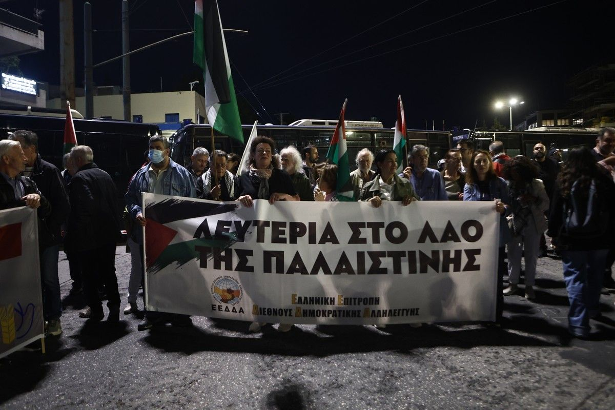 Με συνθήματα “Η ιστορία έχει μια σωστή πλευρά, με την Παλαιστίνη ως τη λευτεριά“, “Στης Γάζας τα συντρίμμια που σφίγγει ο κλοιός σηκώνει το κεφάλι ο ήρωας λαός” και “Καμία συνεργασία με το κράτος – δολοφόνο Ισραήλ“, οι διαδηλωτές ξεκίνησαν από τη στάση του μετρό “Πανόρμου” και κατευθύνθηκαν με πορεία στην πρεσβεία του Ισραήλ, ενώ κάλεσαν για δυνάμωμα της πάλης για ανεξάρτητο Παλαιστινιακό κράτος στα σύνορα του 1967, με εδαφική συνέχεια και με πρωτεύουσα την Ανατολική Ιερουσαλήμ, χωρίς κατοχικές, στρατιωτικές και αστυνομικές δυνάμεις, χωρίς εποικισμούς και εποίκους.