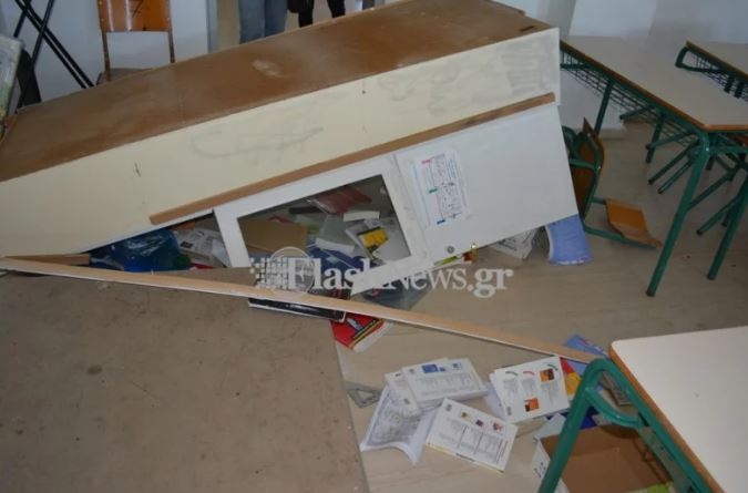 Εκτεταμένες φθορές σε τρεις αίθουσες διδασκαλίας στον πρώτο όροφο του κτηρίου, όπου στεγάζεται το 1ο Γυμνάσιο Ελευθερίου Βενιζέλου, στα Χανιά