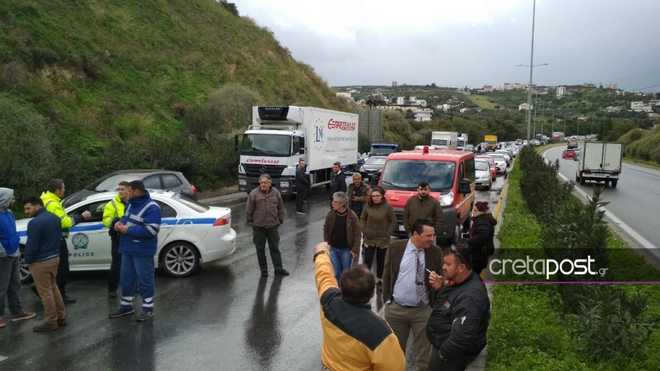 Στο Βενιζέλειο νοσοκομείο μεταφέρθηκε ο οδηγός - Ουρές οχημάτων έχουν σχηματιστεί στον κεντρικό οδικό άξονα της Κρήτης
