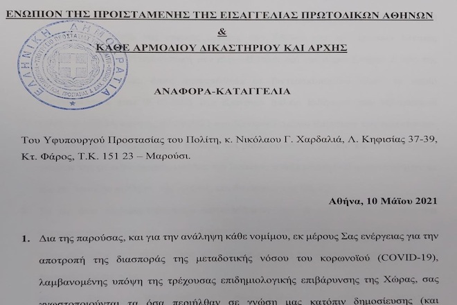 Μηνυτήρια αναφορά στην εισαγγελία θα κατατεθεί από την Πολιτική Προστασία για την διερεύνησης τυχόν αξιόποινων πράξεων της Super League 2 που έθεσαν σε κίνδυνο τη Δημόσια Υγεία.