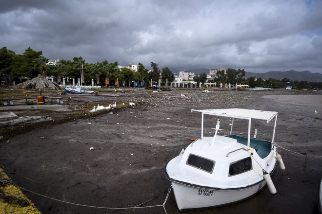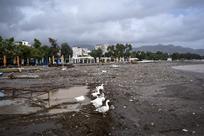 Σε βάλτο, με λάσπη και μπάζα μετατράπηκε η παραλία της Νέας Περάμου μετά τις καταστροφικές πλημμύρες που έπληξαν την Τετάρτη την Δυτική Αττική.