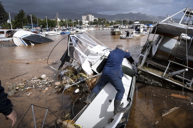 Λάσπη και μπάζα γέμισε η θάλασσα στη Νέα Πέραμο από τις φονικές πλημμύρες