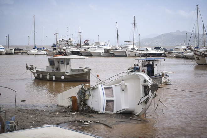 Στις εικόνες φαίνεται η θάλασσα να έχει “εξαφανιστεί” ενώ πολλές βάρκες και καΐκια έχουν μισοβυθιστεί.