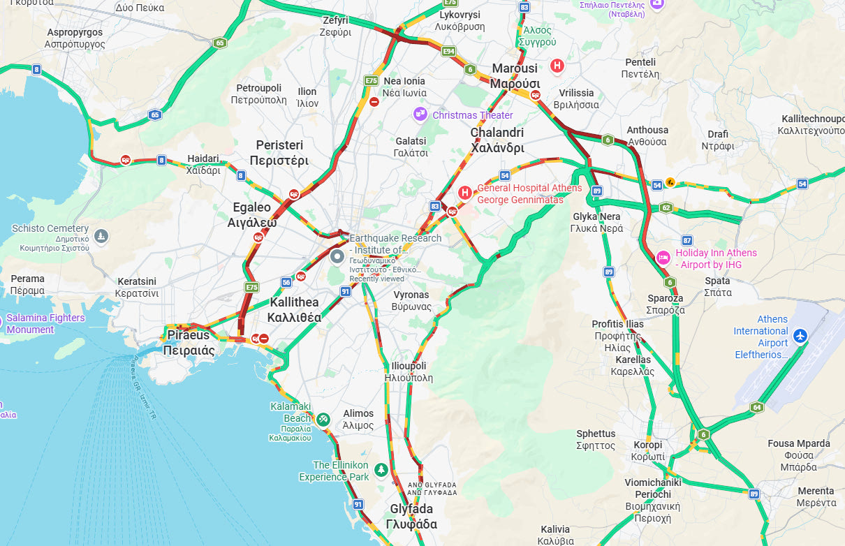 Μεγάλες καθυστερήσεις σημειώνονται αυτήν την ώρα στην Λεωφόρο Κηφισού, στην άνοδο από Μοσχάτο μέχρι Μεταμόρφωση και στην Κηφισίας και στα δύο ρεύματα από Αμπελόκηπους μέχρι Μαρούσι.
