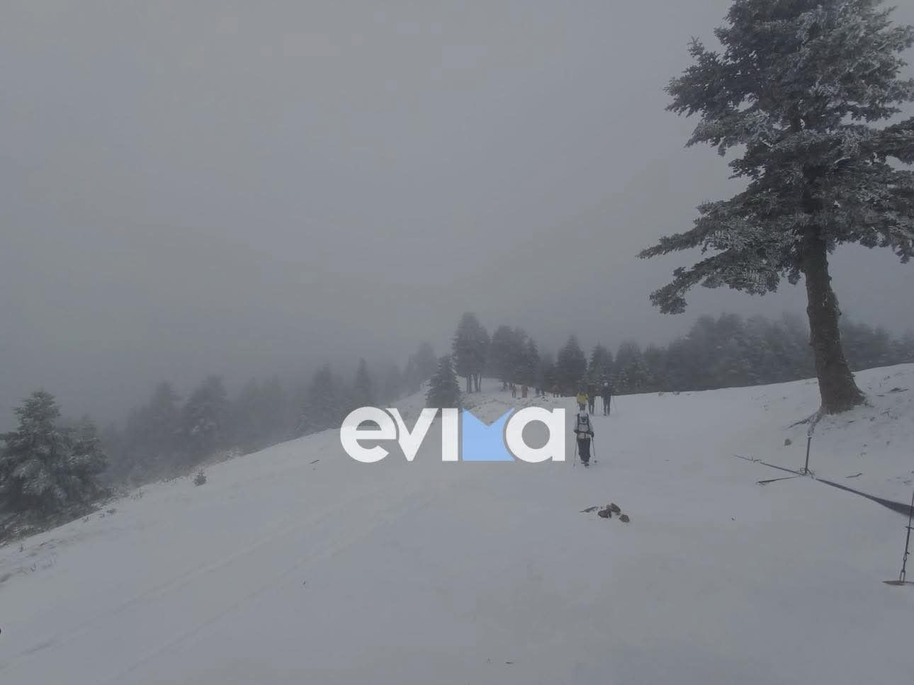 Με τη θερμοκρασία να μένει σε μονοψήφιες ανώτατες τιμές και αρνητικές θερμοκρασίες να σημειώνονται σε μια σειρά από περιοχές ανά την Ελλάδα, τα χιόνια έκαναν ξανά την εμφάνισή τους και στην Εύβοια.