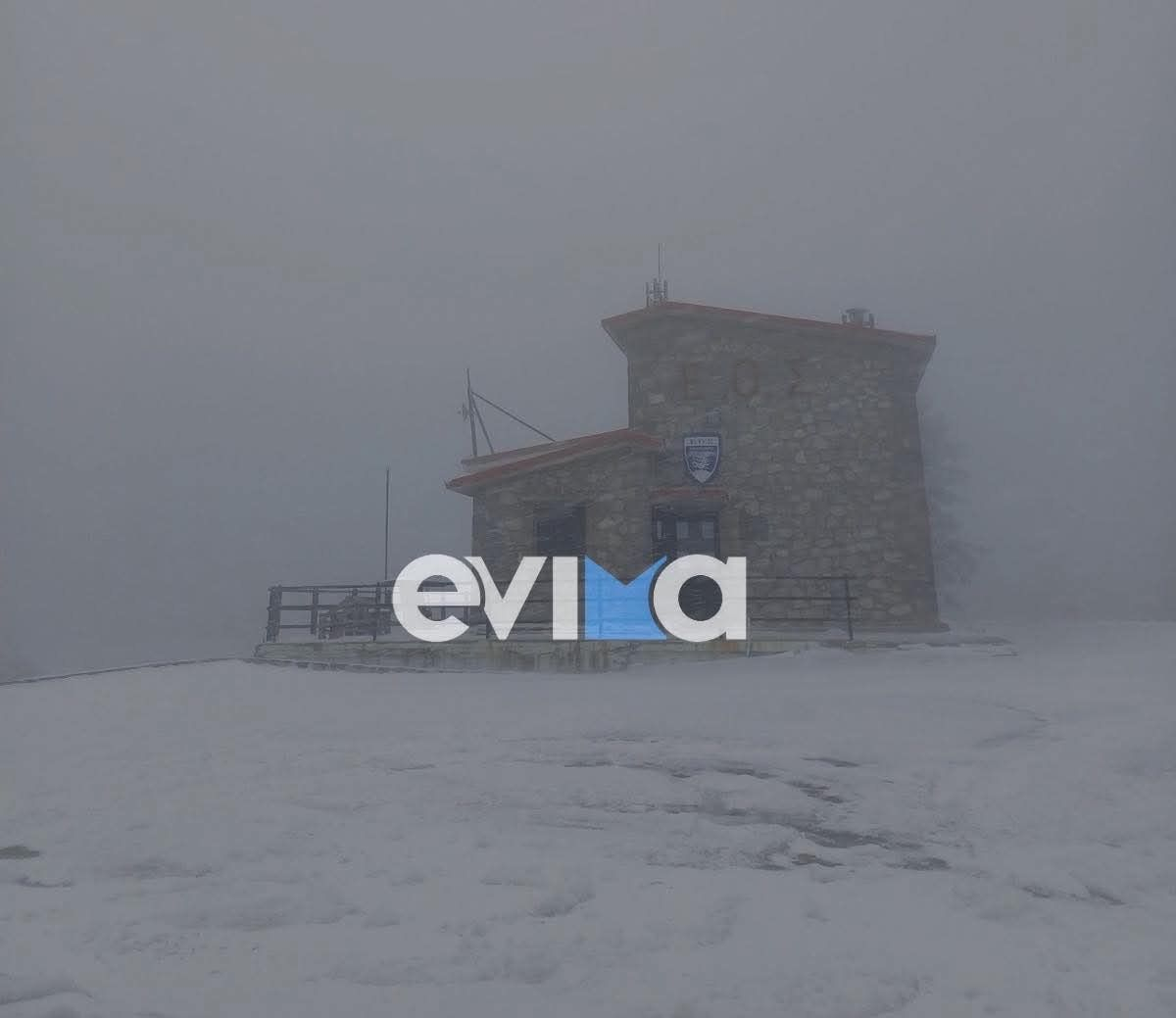 Πυκνό χιόνι εξακολουθεί να πέφτει και στα 1100 μέτρα, στο καταφύγιο «Μιχάλης Νικολάου» του ΕΟΣ Χαλκίδας.