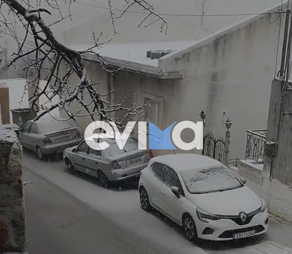 Από το μεσημέρι του Σαββάτου, χιόνια πέφτουν στα Καμπιά και στη Στενή Ευβοίας, ενώ στα λευκά ντύθηκαν και τα χωριά Στρόπωνες και Καθενοί.