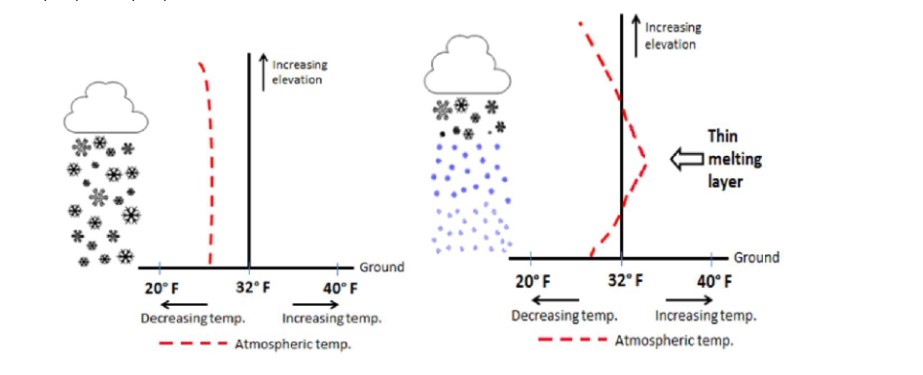 Μεγάλο ρόλο διαδραματίζει το θερμοκρασιακό προφίλ της ατμόσφαιρας στις κατώτερες στάθμες κατά την διάρκεια των χιονοπτώσεων . Το είδος του χιονιού δεν σχετίζεται μόνο με την θερμοκρασία που επικρατεί στην επιφάνεια του εδάφους, αλλά συνολικά στις κατώτερες στάθμες της ατμόσφαιρας και στην περιοχή μεταξύ εδάφους και νέφους.